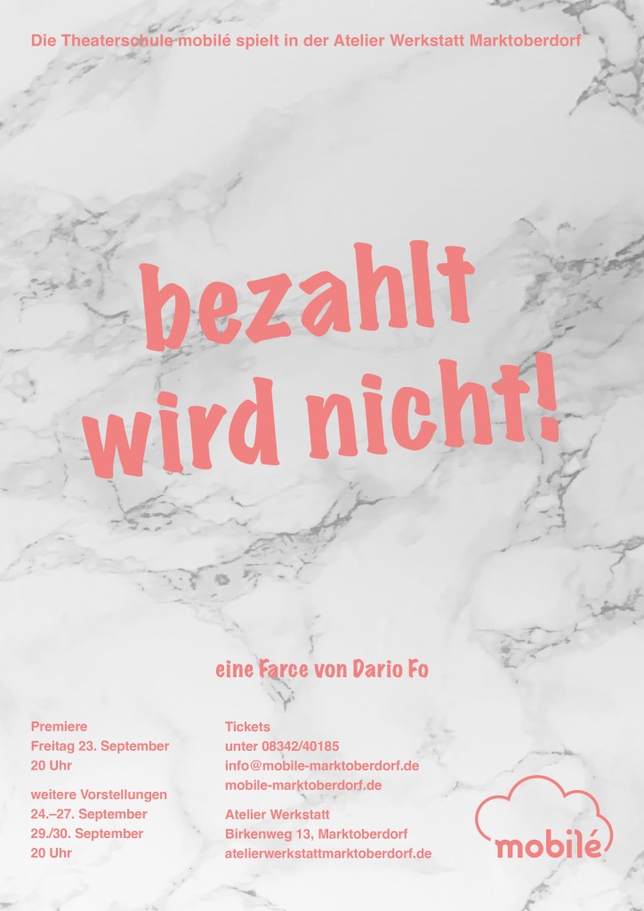 Das mobilé spielt mit fünft Nachwuchsschauspieler*innen das Stück NON SI PAGA! – Bezahlt wird nicht! Ende September in der Atelier Werkstatt. Nach dem Shoppingtheater WARTEN AUF im Oktober 2020 ist es bereits die zweite Zusammenarbeit der Theaterschule mobilé um das Regieteam Lucia Golda und Patrick Lutz, der Atelier Werkstatt und dem Bühnenbildteam Annina Meier und Franziska Singer.
