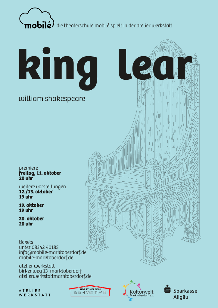 Das mobilé ist zum dritten Mal mit einem Theaterstück und seinem Ensemble zu Gast in der Atelier Werkstatt. 2024 wird das William Shakespear Stück King Lear aufgeführt.