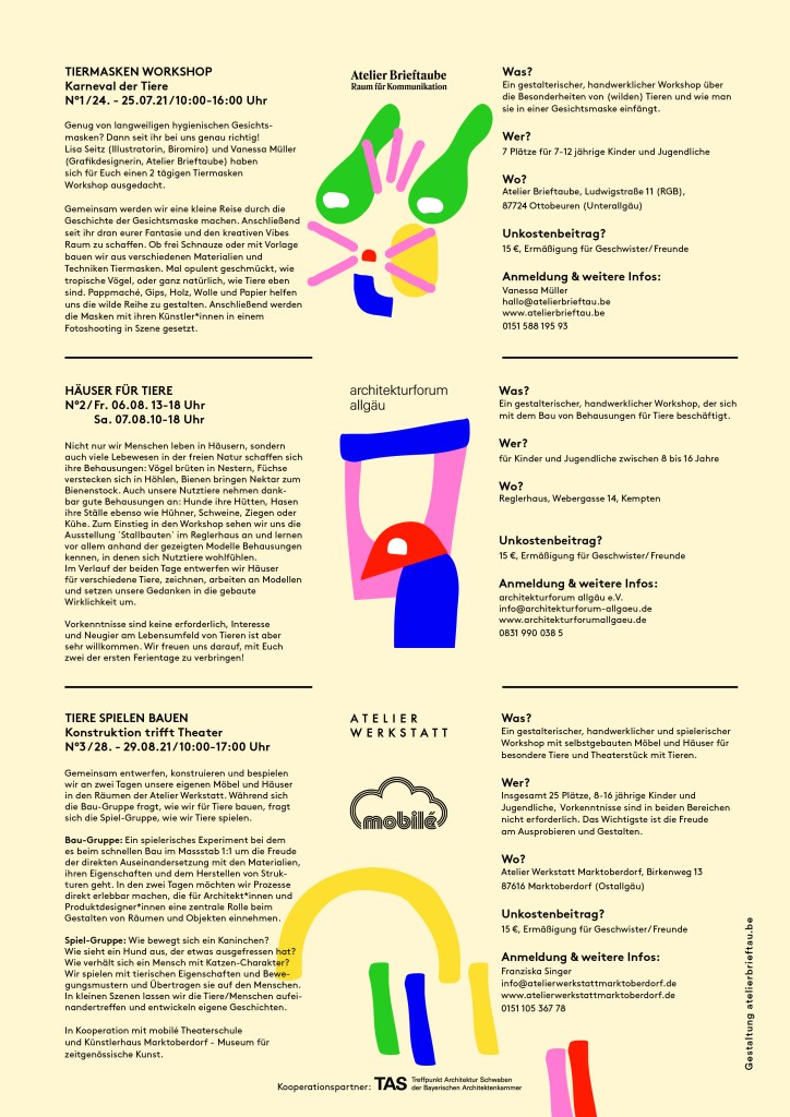 TIERMASKEN 24. – 25. Juli Atelier Brieftaube Ottobeuren